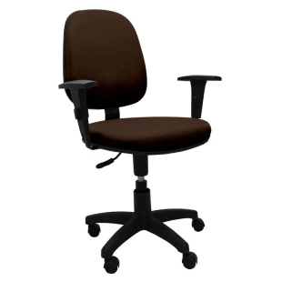 Cadeira operacional ergonômica com base giratória e regulagem a gás (altura de 43 a 55 cm). Estofada em tecido poliéster, espuma D45 e sistema RELAX. Medidas: 68 × 66 cm. Suporta 120 kg.